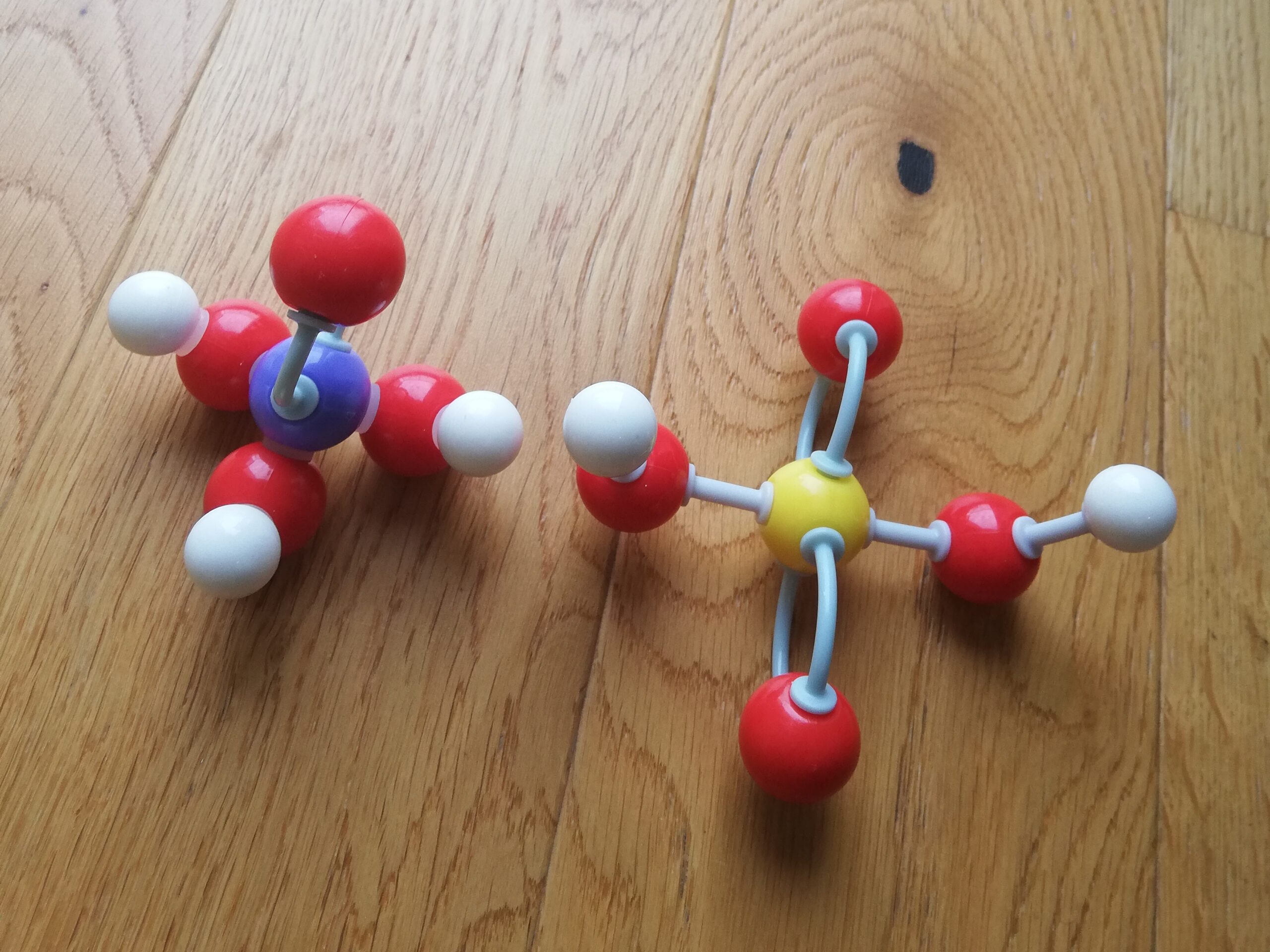 Voici les molécules d’acide sulfurique (à droite) et d’acide phosphorique (à gauche)