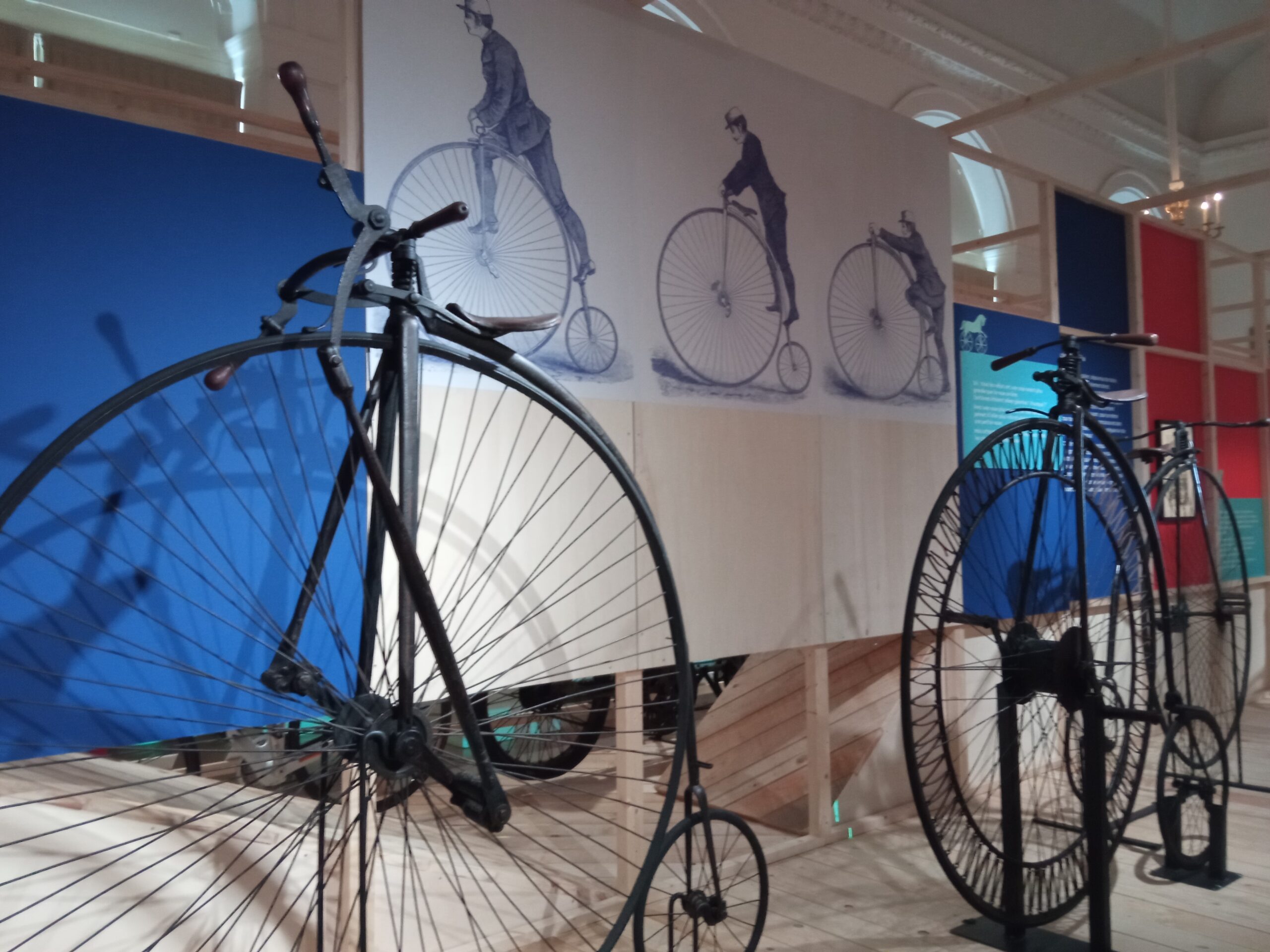 Les roues sont de plus en plus grandes pour aller plus loin en un tour de roue et donc aller plus vite.